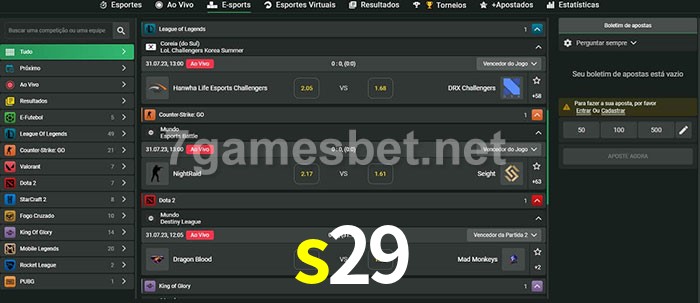 A aposta s29 oferece aos jogadores a experiência mais conveniente de apostas em eSports!